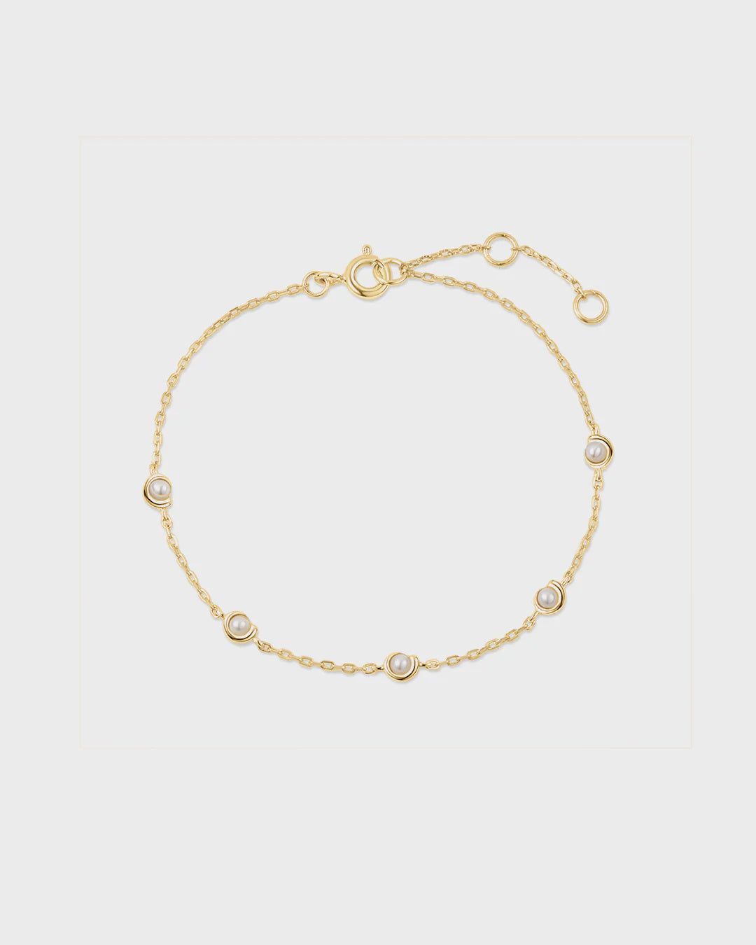 The Aster Bracelet features five dainty freshwater pearls set in gold. This elegant design is perfect for any outfit.