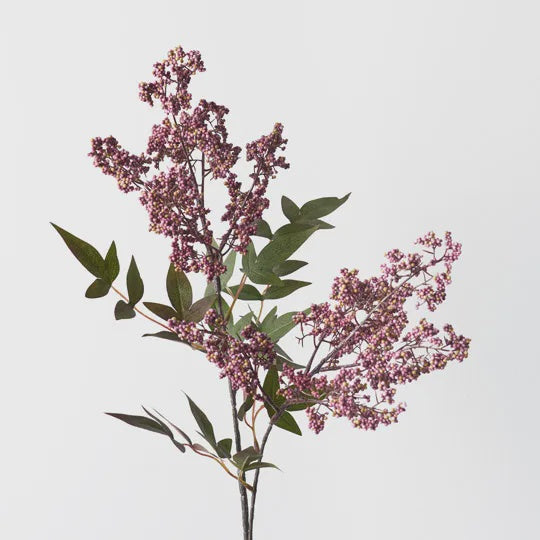Bring the garden indoors with this stunning artificial pepper berry spray, unbelievably realistic it will feel like you have just been to the market and picked a fresh bunch. Easily maintained this beautiful faux berry spray will bring lasting beauty into your home. Create a one of a kind artificial arrangement mixing with other stems or place in one of our decorative vases on its own. For longer lasting, keep out of direct sunlight.