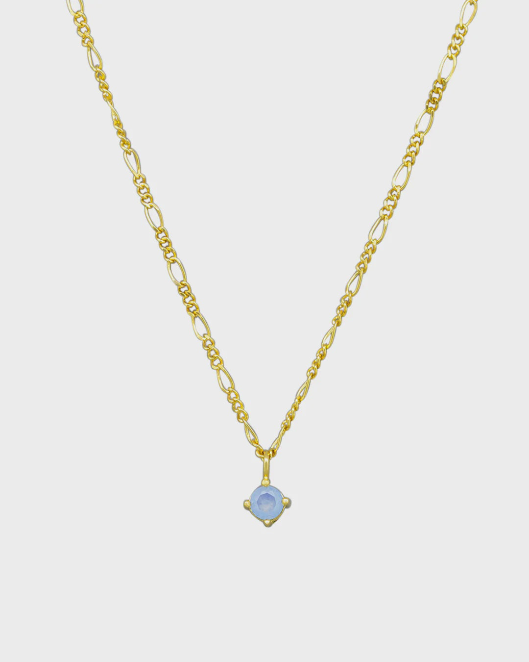 The Betty necklace feature an elegant figaro style chain with hanging solitaire crystal stone. This design adds a touch of luxury and femininity to any outfit. Perfect to style for daily wear or for a special occasion.