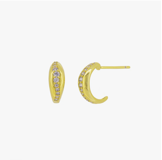The Blanche Earrings feature a mini hoop shape with a row of sparkling Cubic Zirconia crystals at the center. A delicate earring for everyday, elevated with the touch of glamour.