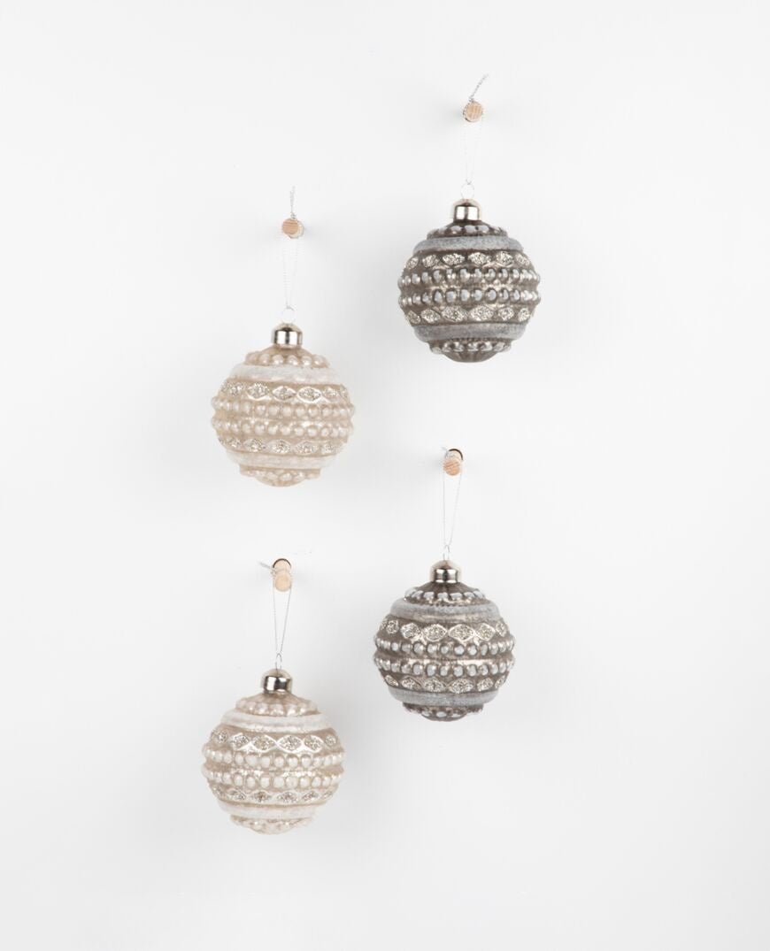 Christmas Fable Glass Hanging Bauble Antique - Set of 4