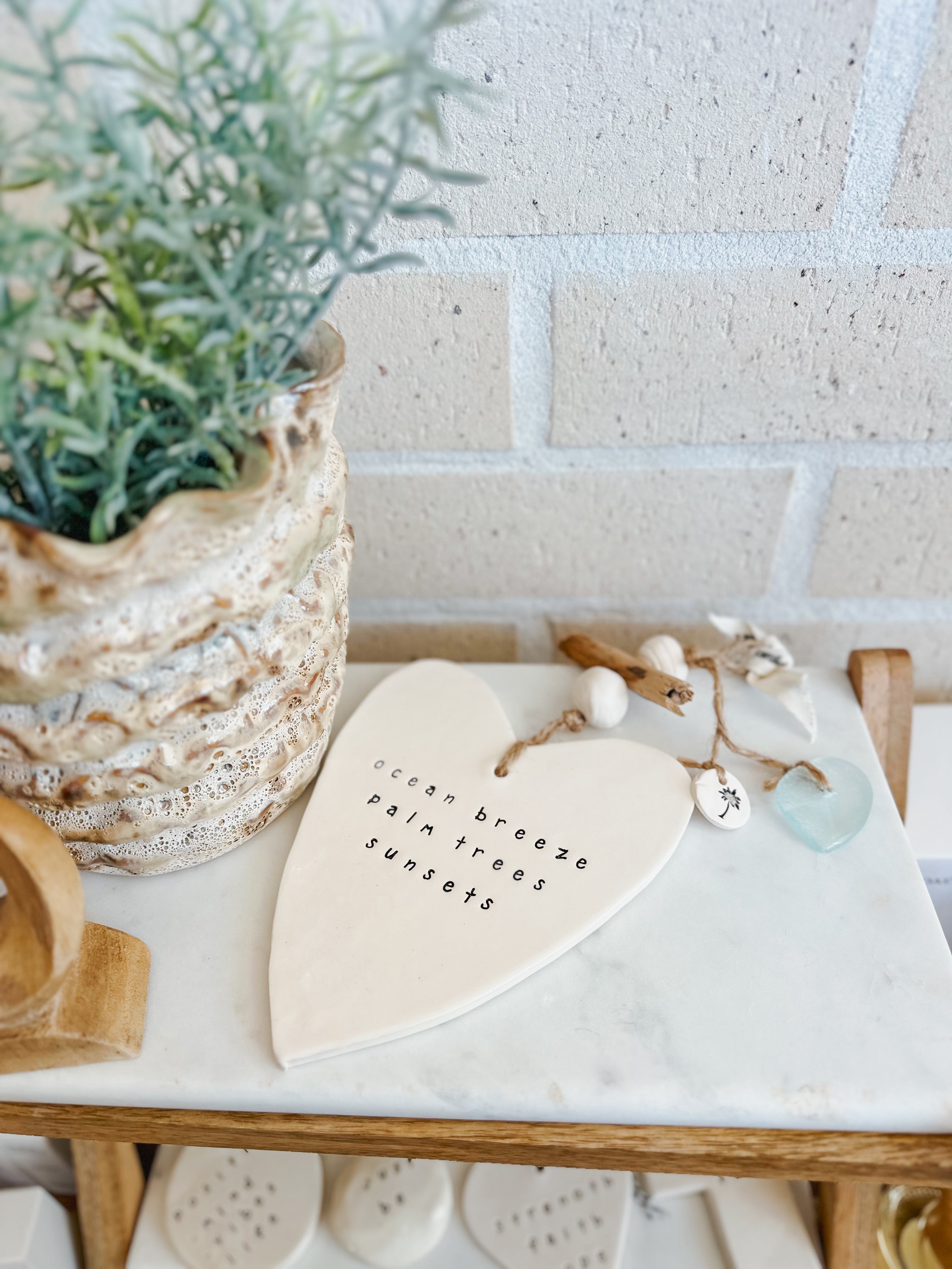 Handmade Ceramic Heart - Ocean Breeze, Palm Trees