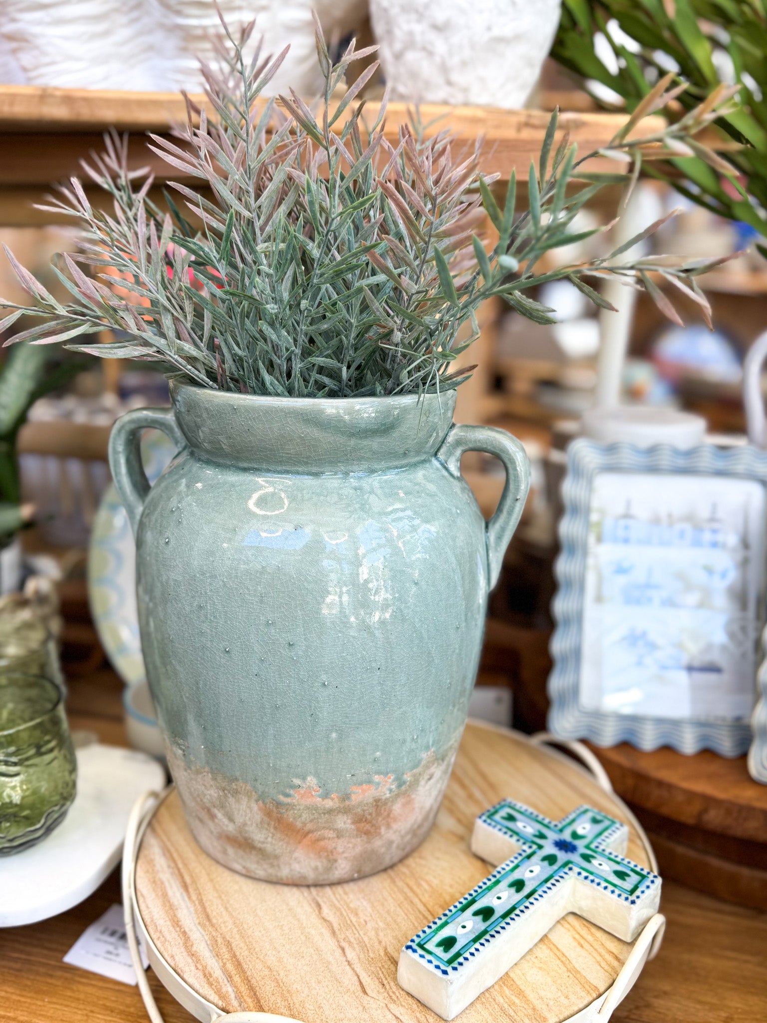 A touch of Mediterranean Charm and the feeling of summer to your indoor or outdoor space. Combining a pretty pale blue glaze with raw, unglazed terracotta creates a design that emphasises the natural handcrafted character of the clay.