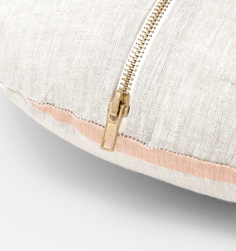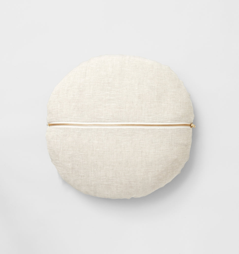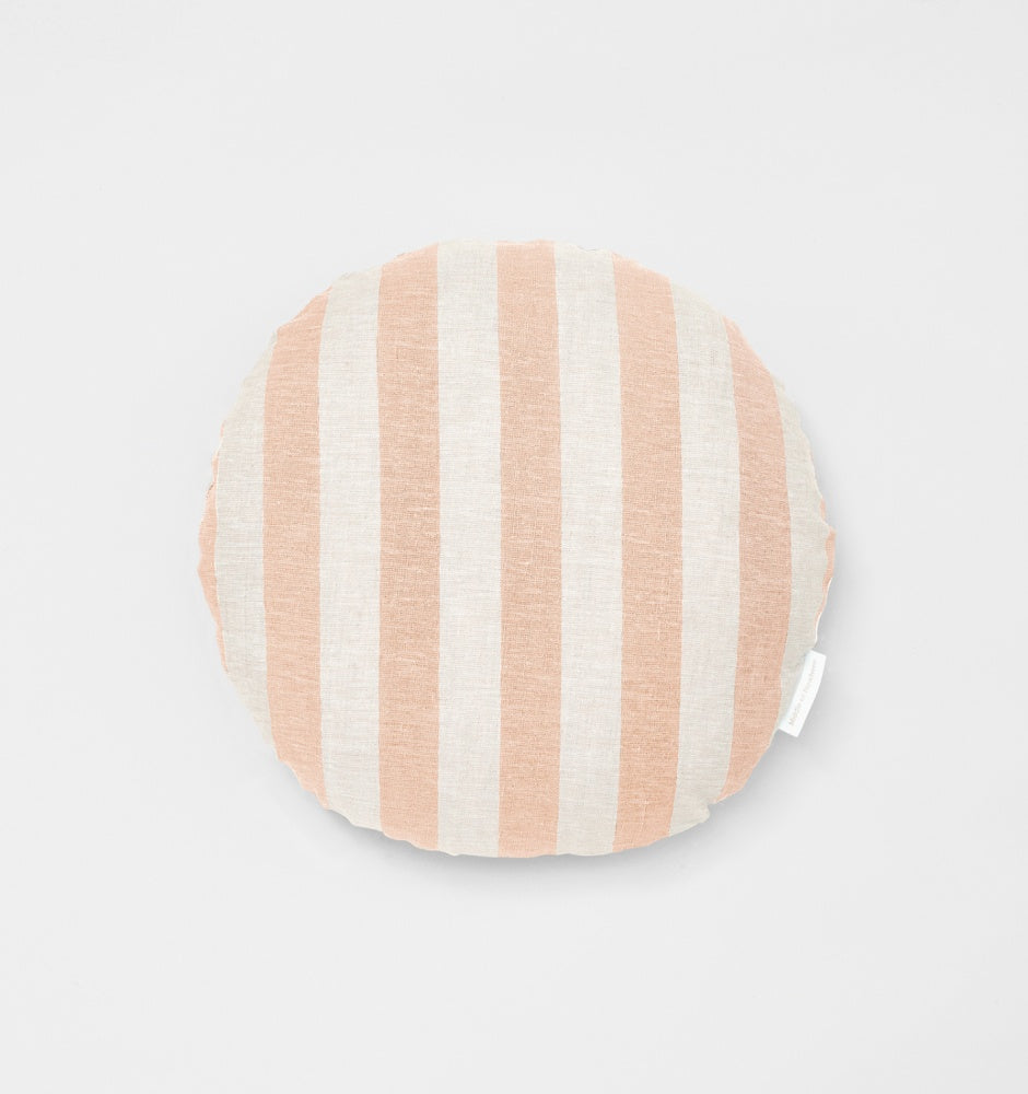 Our Check Rose Round Cushion features a natural linen case with a modern screenprinted geometric pattern.
