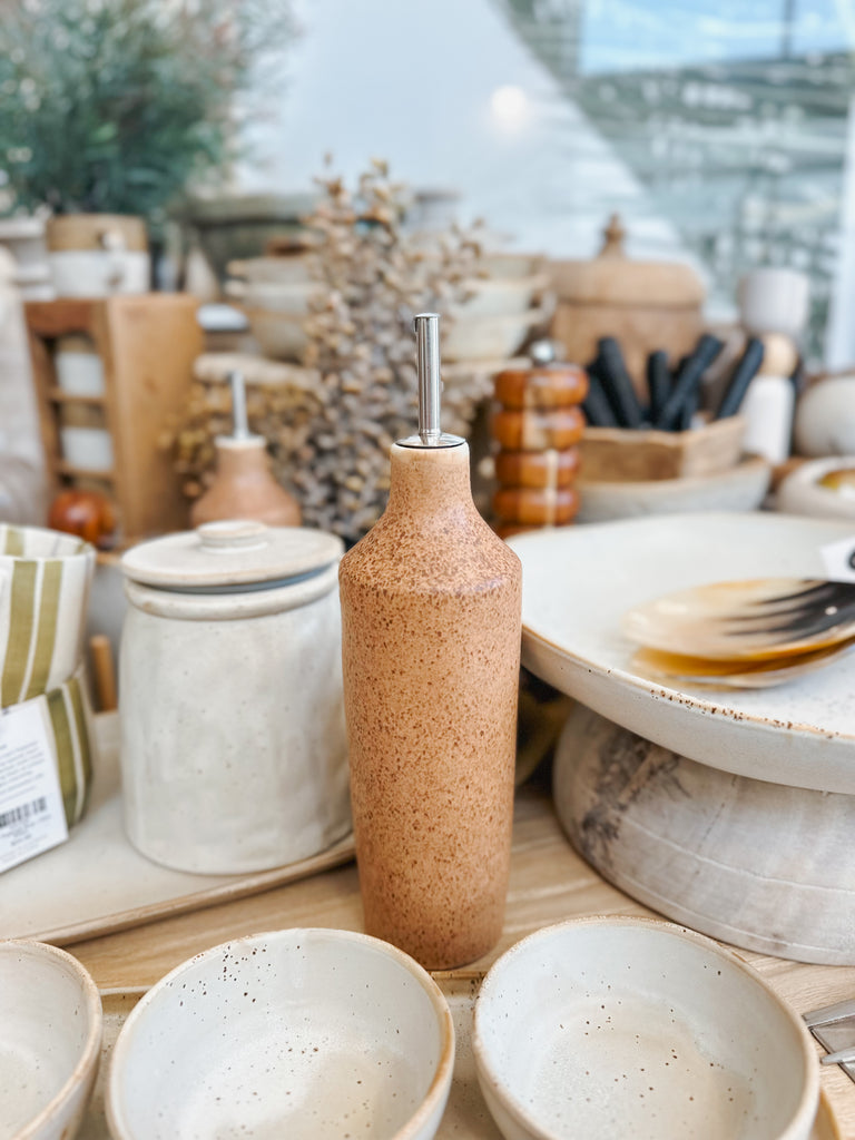 Henri Ceramic Oil/ Vinegar Bottle - Clay