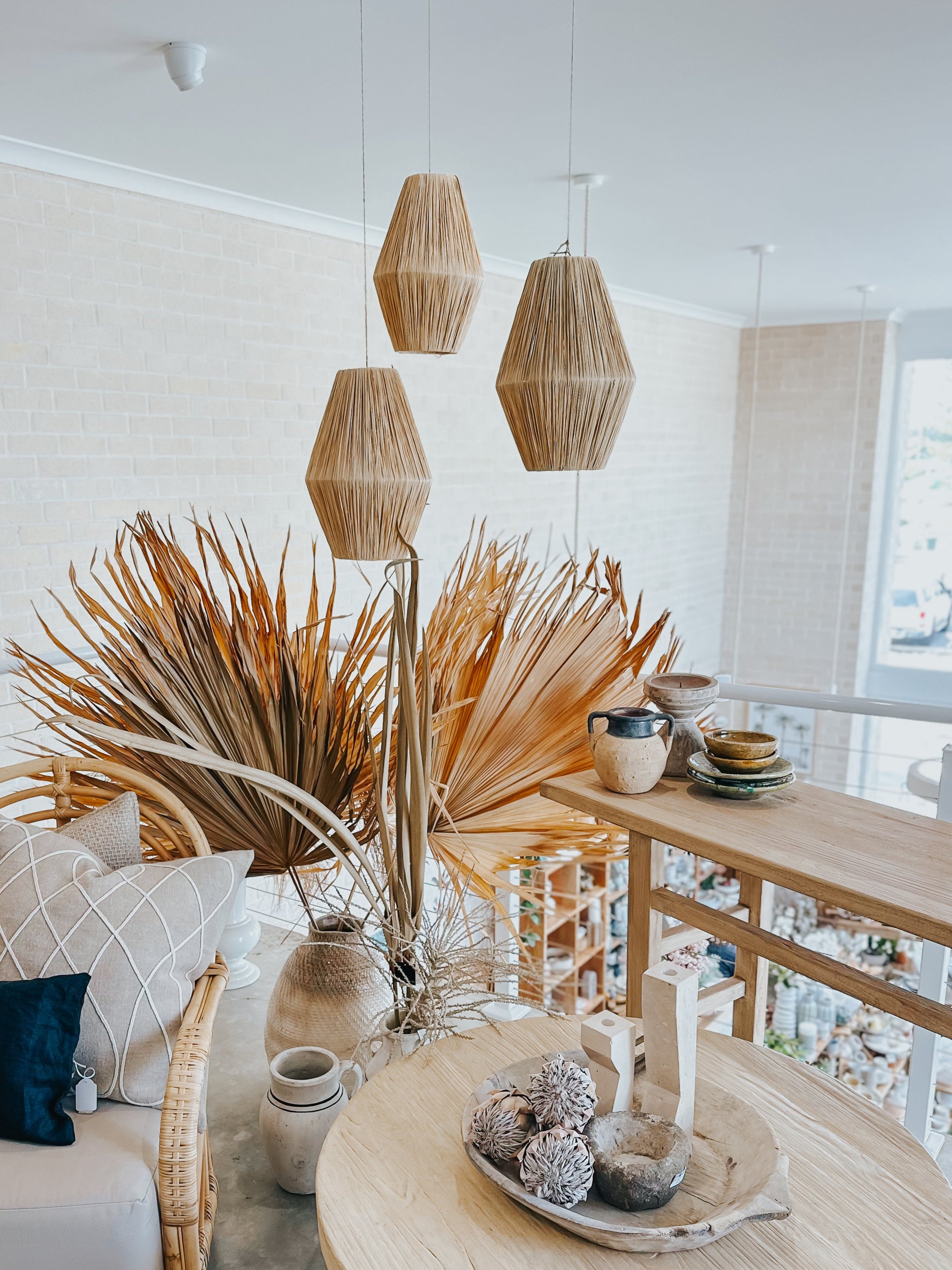 Enhance the ambiance of your home with the versatile Moroccan Raffia Light Pendant, an ideal size for adorning your dining table, living room, or bedroom. Crafted with utmost care, the handmade quality of each pendant ensures a unique and distinctive character, making it a standout feature in your decor. Embrace the charm of individuality and infuse your living spaces with the captivating allure of this artisanal masterpiece. Whether it's an intimate dinner, a cozy night in, or a relaxing retreat, the Moroccan Raffia Light Pendant promises to elevate your space with its timeless elegance and artisanal craftsmanship.
