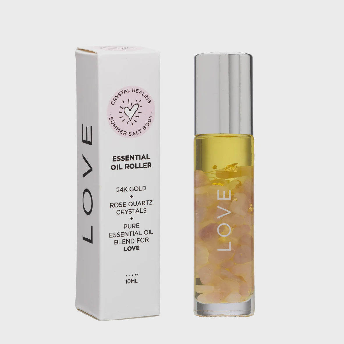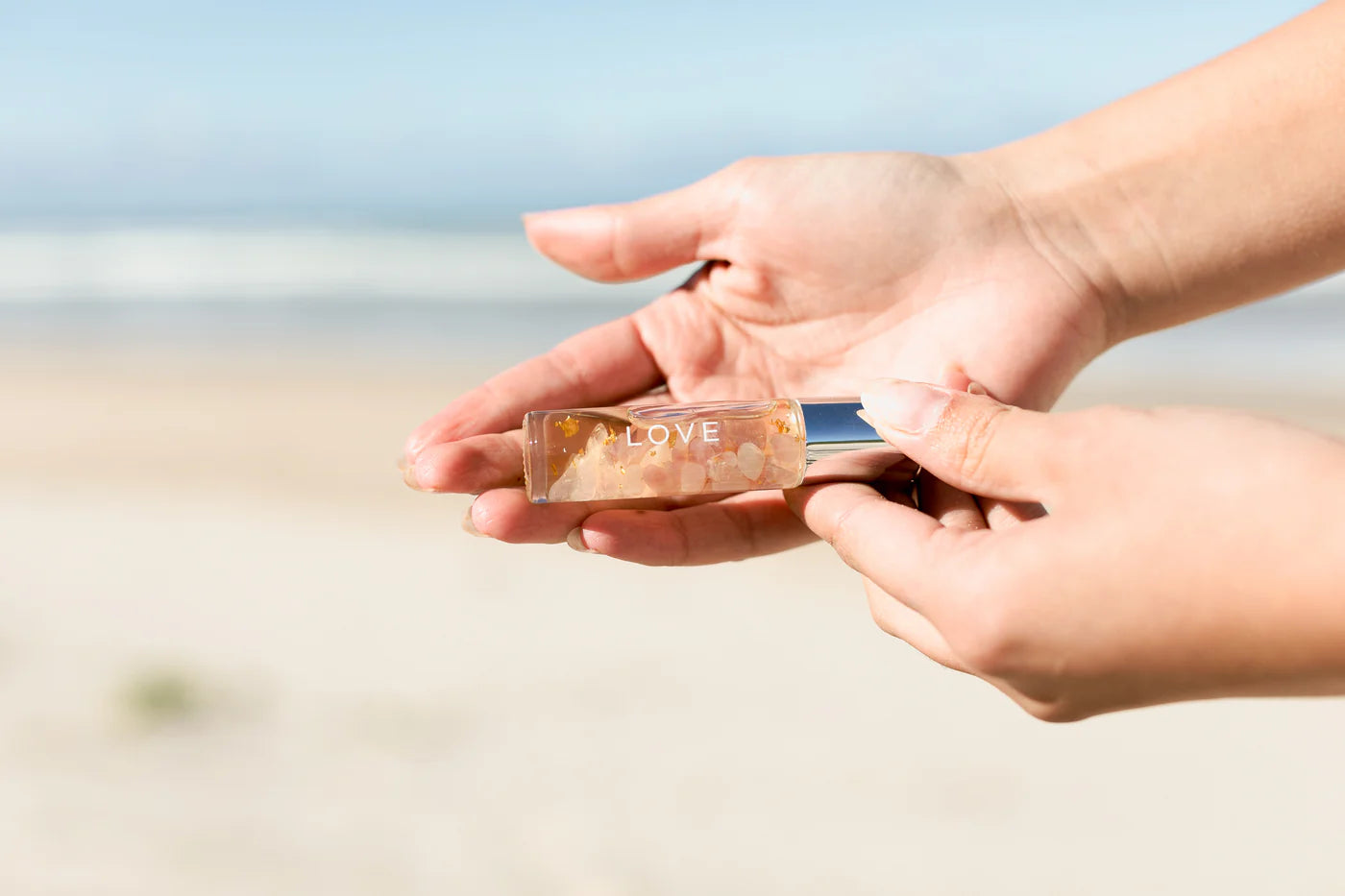 Rose Quartz infused oil with a Rose Quartz rollerball to promote Love, Compassion, Kindness & Tenderness. This essential oil blend of Rose & Vanilla will encourage self-love as well as the love you have for others.