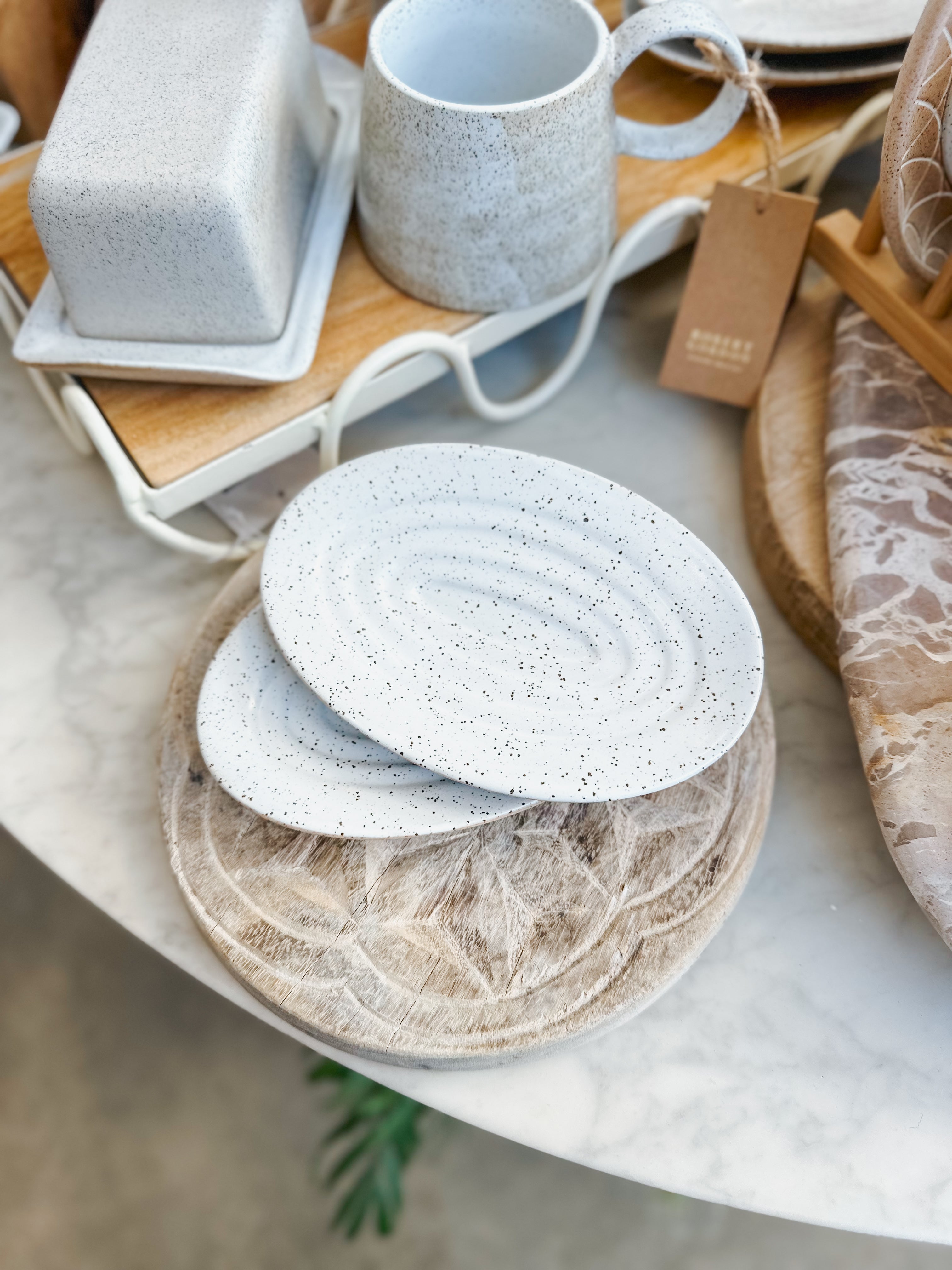 Garden To Table is a hand crafted range, using a high fired stoneware with iron flecks. At times, the iron flecks may appear to bleed in the clay body, creating unique patches of red or orange. This is a natural occurrence, when the iron meets with high temperatures in the kiln. It is part of the beautiful process of hand making pottery, and is not considered a fault. We hope that you enjoy the one-of-a-kind collection that is Garden to Table, and all its lovely imperfections.