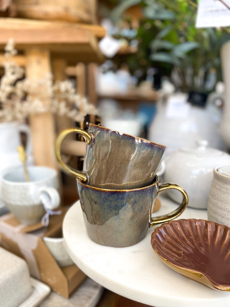 Mae Button Handmade Drinking Mug - Blue Stripes