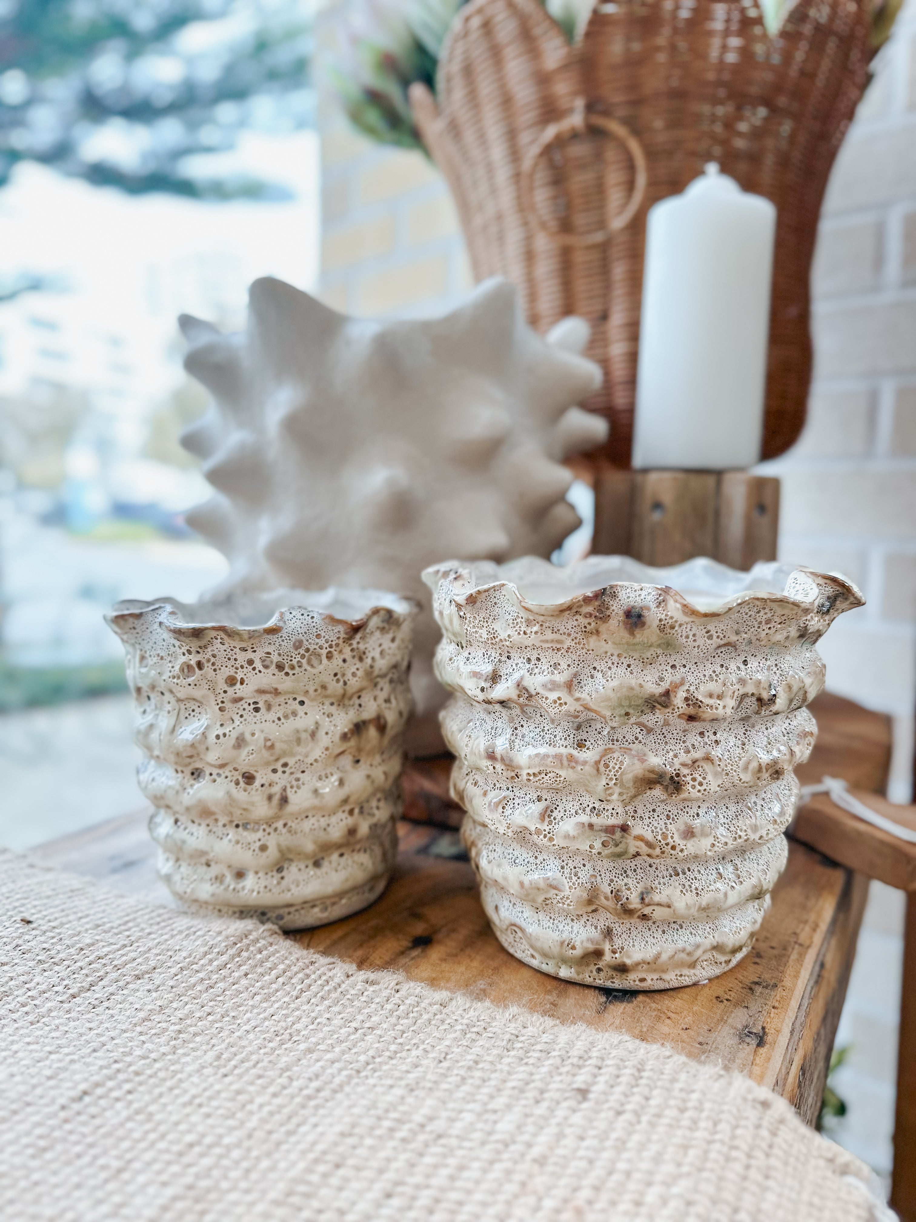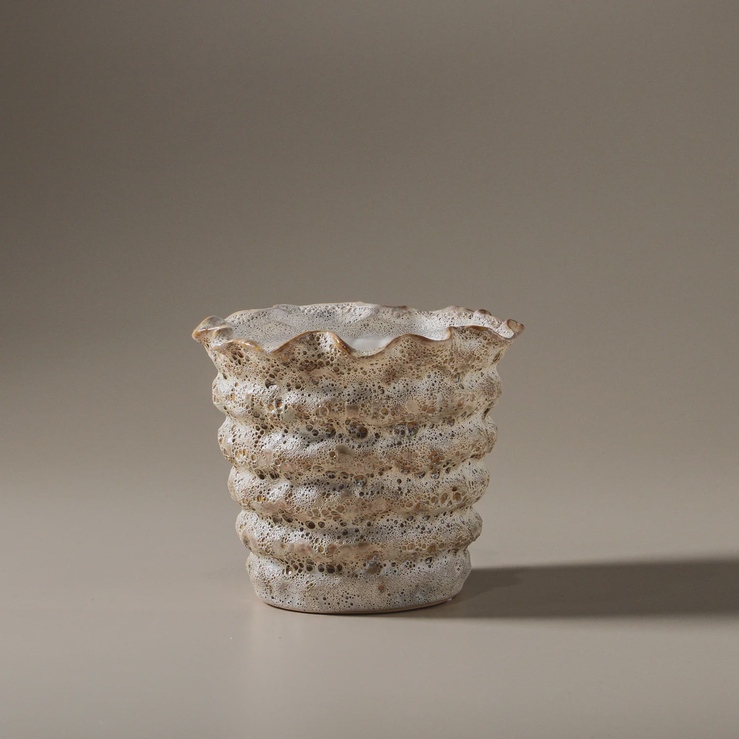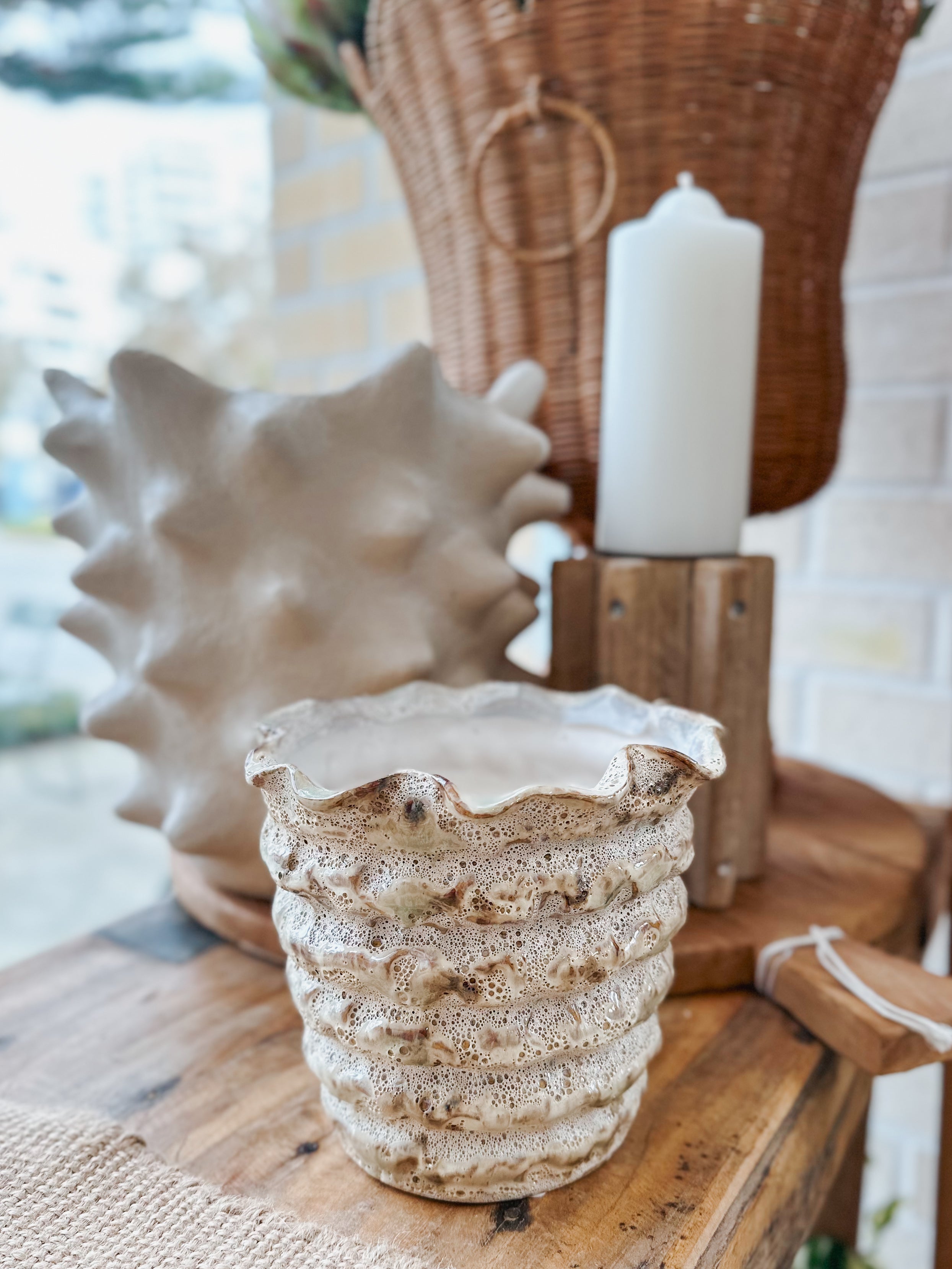 The Nautilus Pot's neutral tones offer a calming presence, serving as a versatile anchor for contemporary interiors. Its refined texture and soft, fluid form create a sense of balance and visual interest.