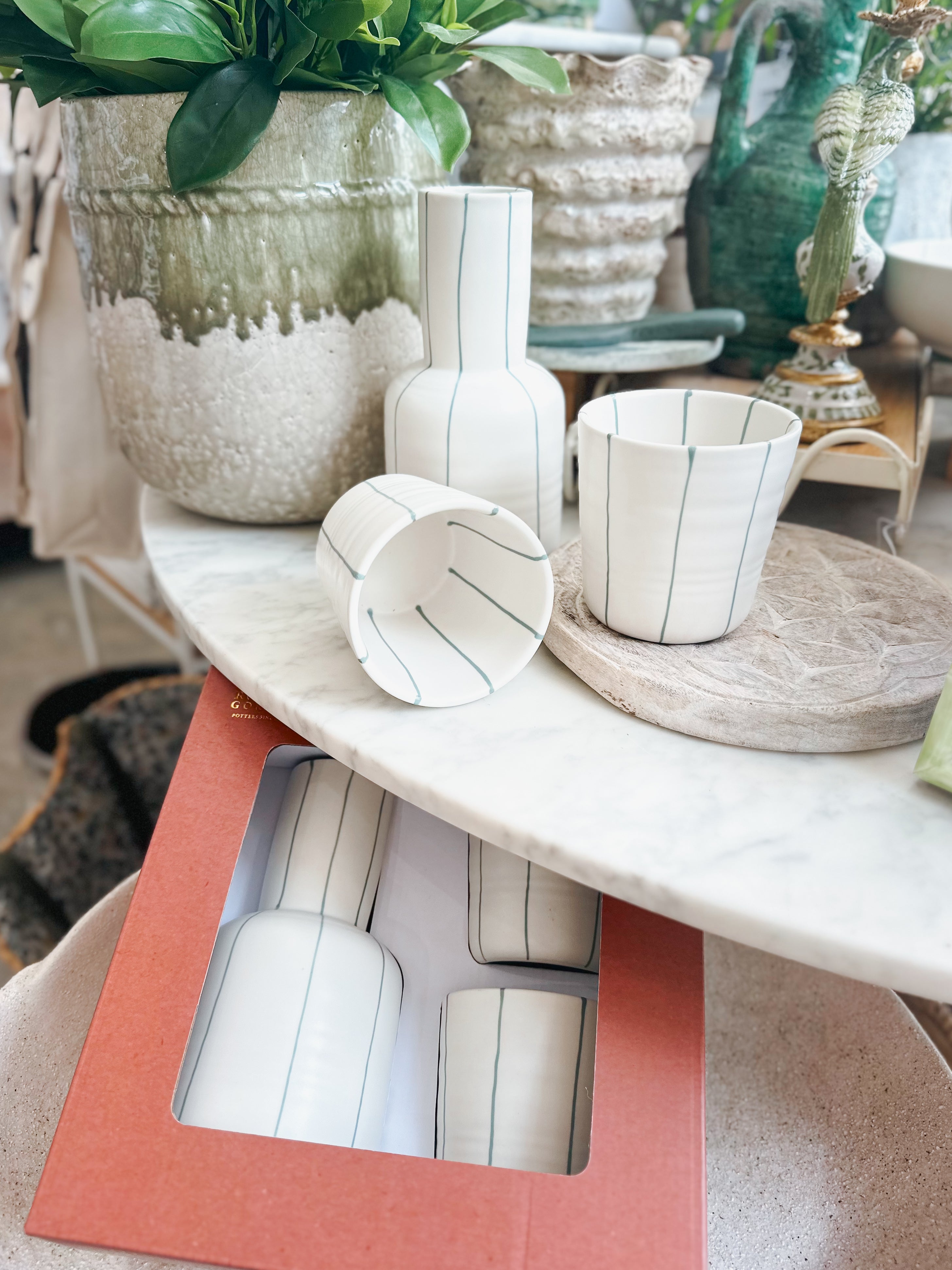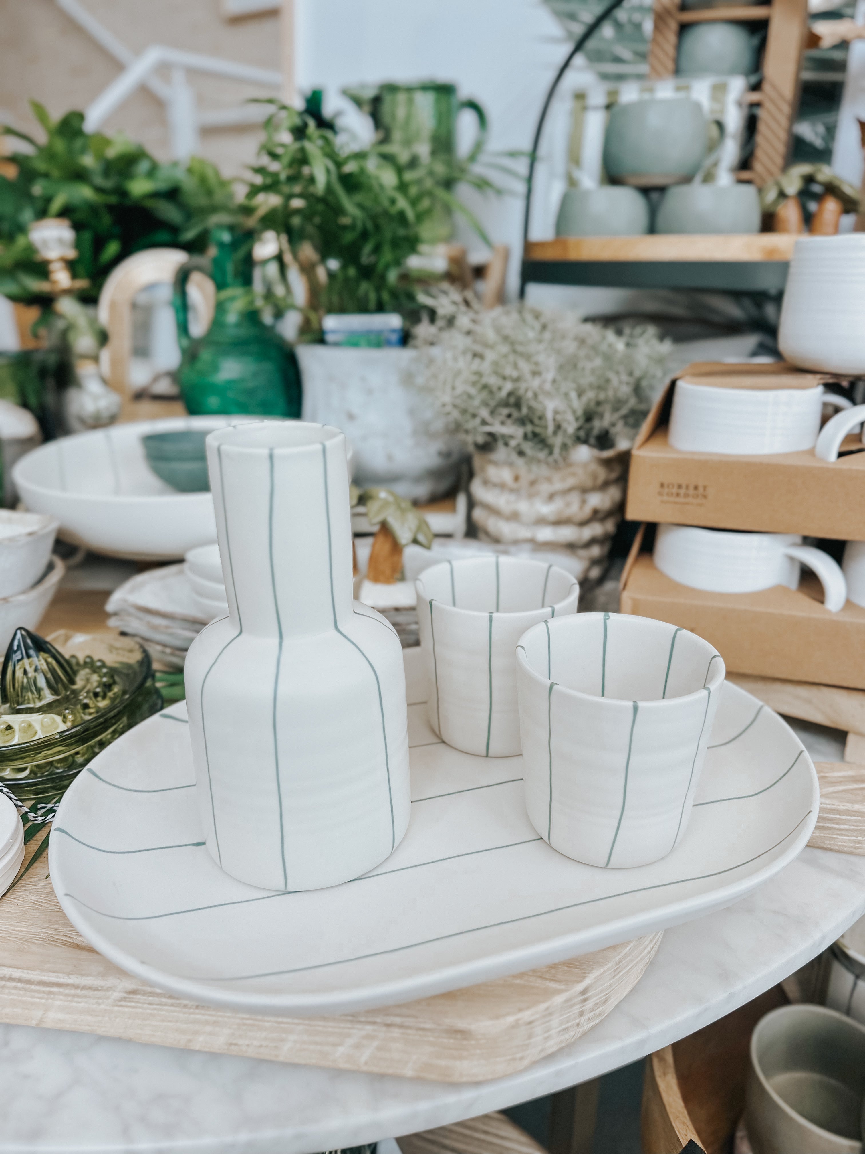 Coastal Junction Carafe Set - Green Stripe