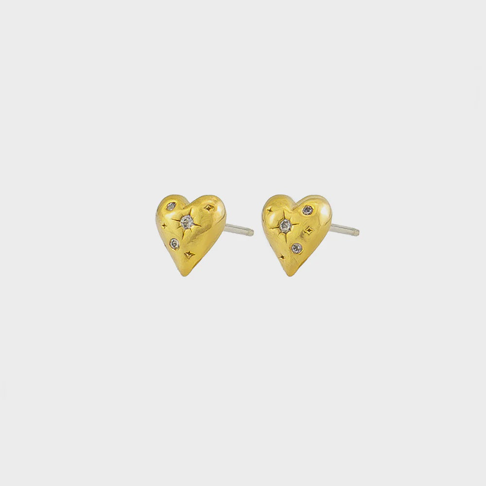 The Daphne Heart Studs are intricately crafted earrings feature small gleaming embedded crystals. Their delicate sparkle adding a touch of timeless glamour to any look.